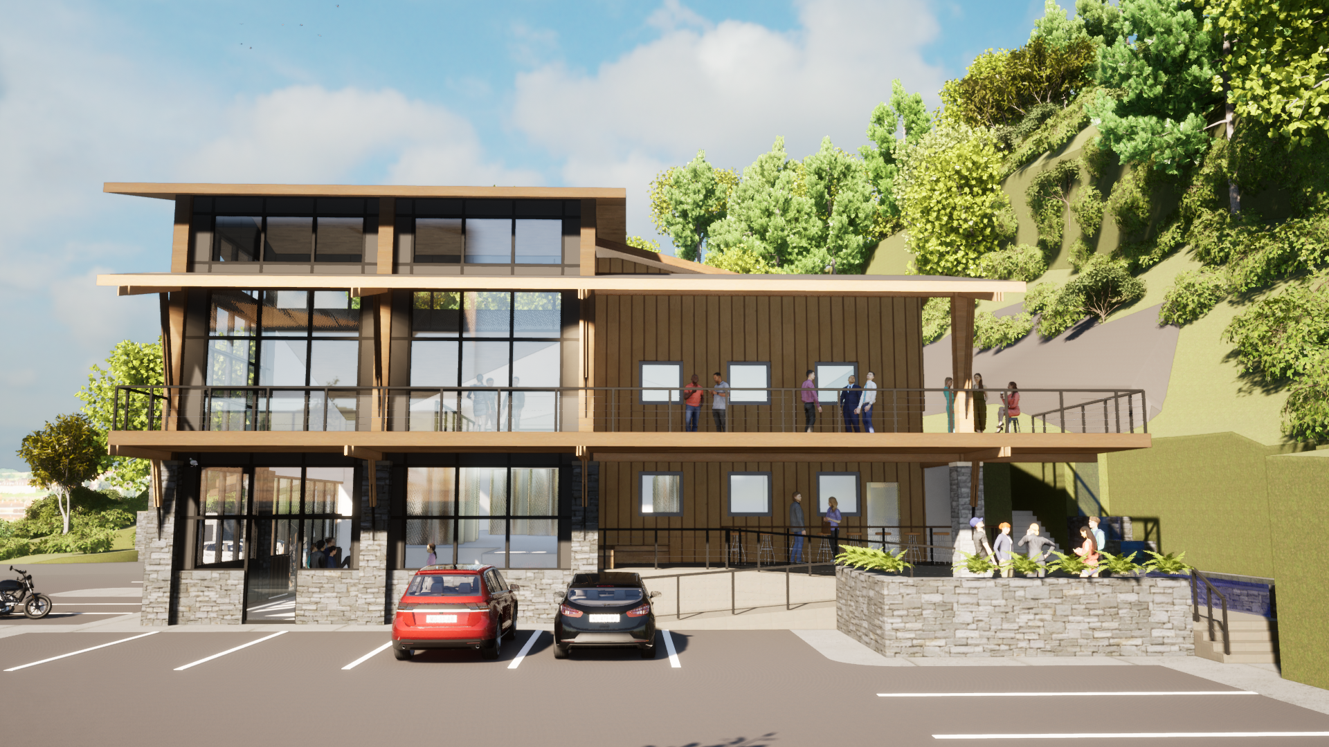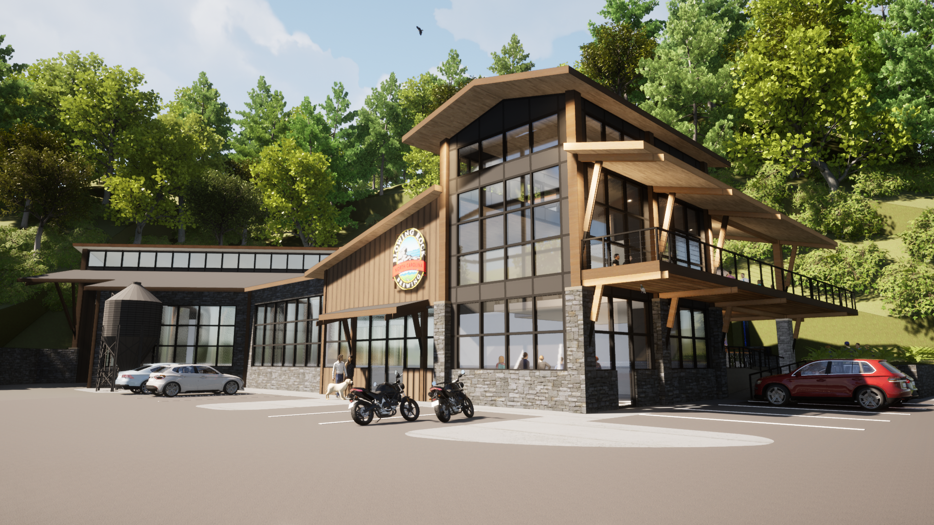 Blowing Rock Brewing Company envisioned a manufacturing facility and taproom that would serve both production needs and community connection—seamlessly integrating the brewing process with the guest experience. The building’s proposed design draws from the natural and architectural character of Blowing Rock, using earthy tones, natural materials, and careful massing to blend into the mountain landscape. Inside and out, the architecture reflects a shared craft: bold, honest, and deeply rooted in place.