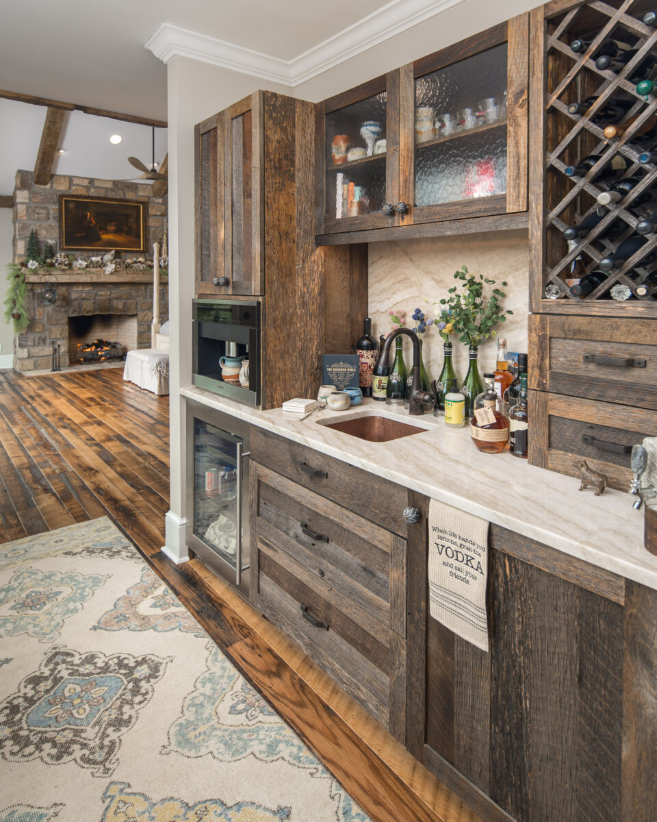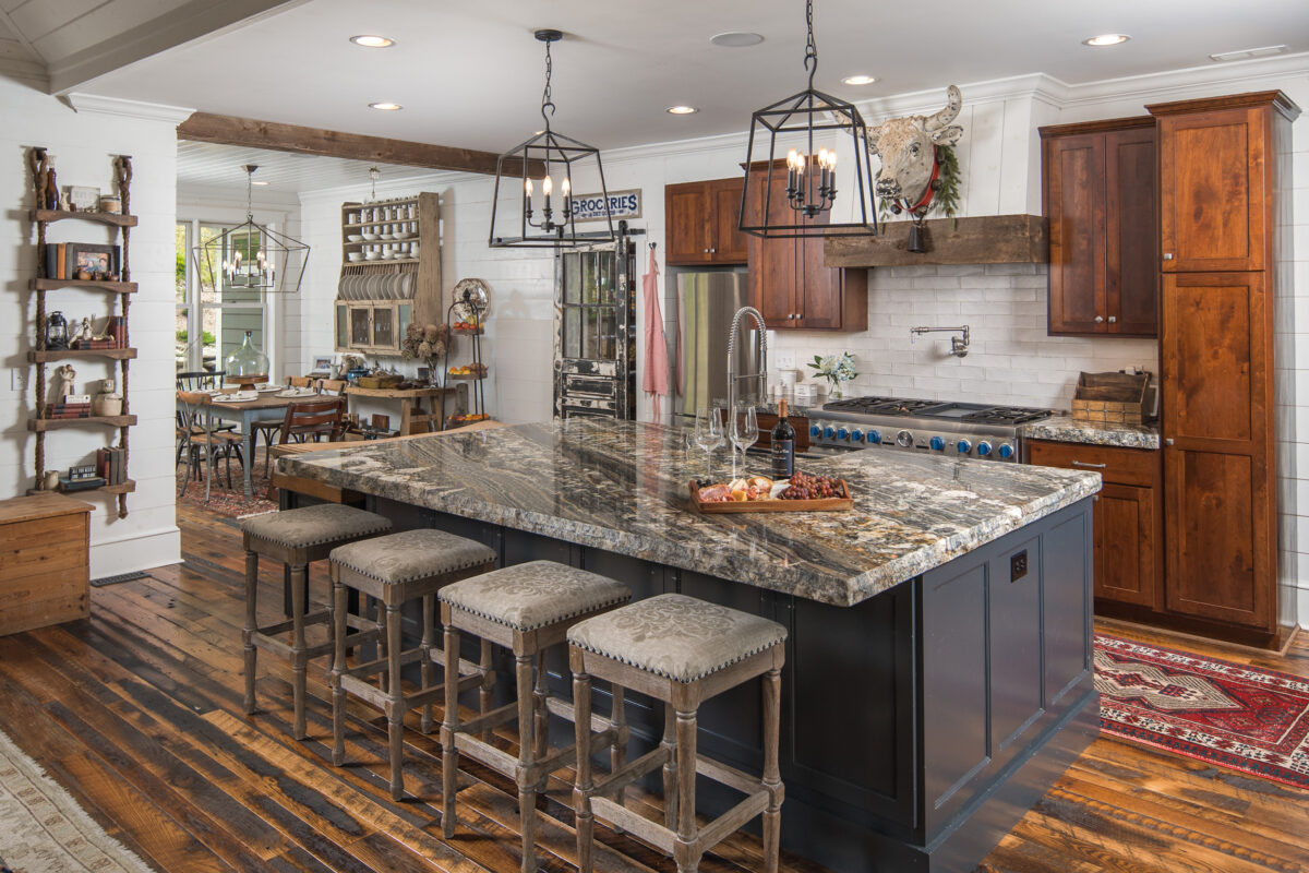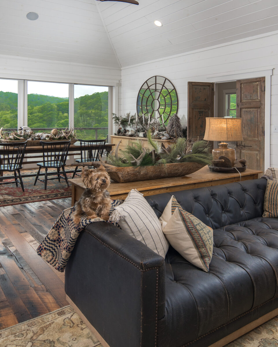 This expansive renovation re-imagines a mountain home as a retreat for multi-generational living, blending modern rustic charm with sweeping views of the Blue Ridge Mountains. The thoughtful layout includes dual primary suites, a guest suite, and inviting common areas designed for connection and comfort. Warm, natural materials—timber beams, stone, and shiplap—bring texture and character, while expansive windows frame the landscape, creating a home where every detail balances beauty, function, and a deep sense of place.