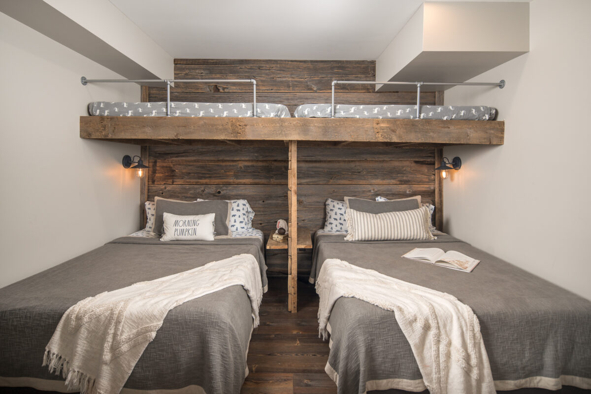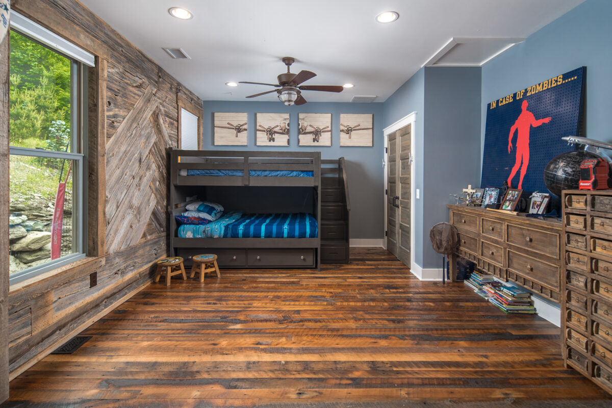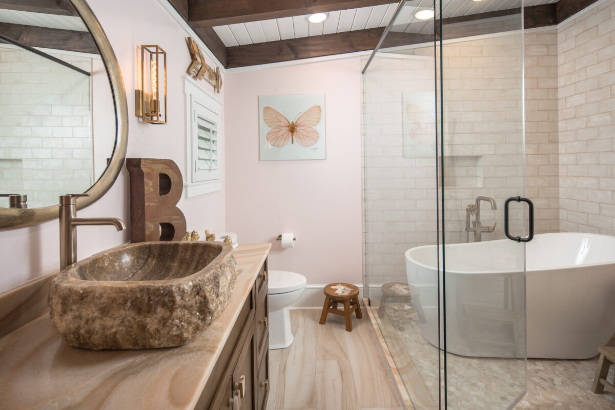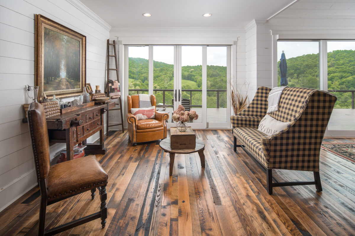 This expansive renovation re-imagines a mountain home as a retreat for multi-generational living, blending modern rustic charm with sweeping views of the Blue Ridge Mountains. The thoughtful layout includes dual primary suites, a guest suite, and inviting common areas designed for connection and comfort. Warm, natural materials—timber beams, stone, and shiplap—bring texture and character, while expansive windows frame the landscape, creating a home where every detail balances beauty, function, and a deep sense of place.