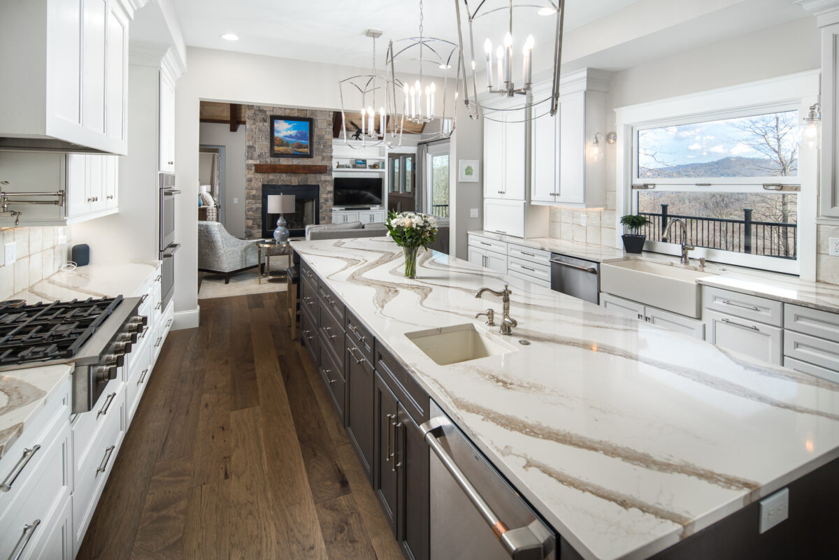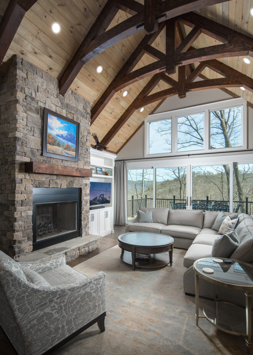 This hilltop residence blends mountain heritage with modern family living, incorporating traditional stone, shake siding, and exposed heavy timber trusses. The open floor plan and expansive kitchen — designed with an emphasis on high-end fixtures, finishes, and indoor-outdoor flow — support both intimate family life and large-scale entertaining. Every detail reflects a commitment to craftsmanship, comfort, and connection to the surrounding landscape.